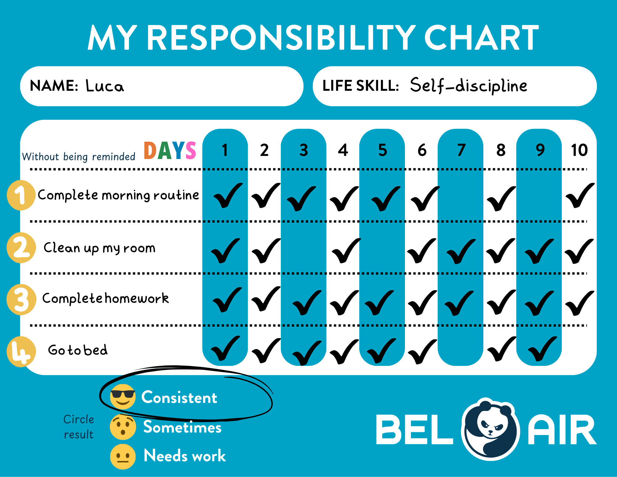 Laminated Life skills goal chart